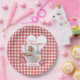 Strawberry time! Cute Strawberry themed first birthday fixings, is ideal for a girl who loves sweet berries. Gingham background for a down-home on-the-farm look that is just the thing for a party of pies, berry topped desserts, fresh fruits, and everything that goes with it. Watercolor fruits and tiny heart accents. Strawberry pink and white.
