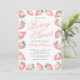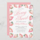 A cute and girly 'Berry Sweet' baby shower theme featuring watercolor pink strawberries with green leaves. A bold blush pink handwriting script typography mixed with a gray simple font. You can change the font colors out to whatever you'd like. You can also change the background color on the front and back. Watercolor Pink Strawberry Berry Sweet Baby Shower Invitation.