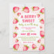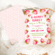 Cute, watercolor, boho sweet strawberry baby girl shower invite. All elements are chosen to bring good vibes, with a mix of summer colours: hot pink, pale pink, and grass green. The charming background with dots, along with the handwritten modern and elegant script, makes this design perfect for summer baby shower celebrations.