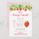 This adorable invitation features watercolor strawberries, greenery and florals.