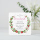 This is a cute gender neutral, square baby shower invitation featuring a wreath of strawberries, white flowers and greenery.