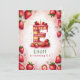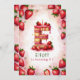 Celebrate a special birthday with this delightful strawberry letter "E" cake invitation! This charming watercolor design features a fun and festive cake shaped as the letter "E," decorated with fresh strawberries, pink icing, and a glowing birthday candle. The soft pink background with scattered strawberries adds a playful touch. Personalize with your child’s name, age, and party details for a one-of-a-kind strawberry-themed birthday celebration. Perfect for kids who love fruit-themed parties or summer birthdays!