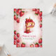 Celebrate a special birthday with this delightful strawberry letter "P" cake invitation! This charming watercolor design features a fun and festive cake shaped as the letter "P" decorated with fresh strawberries, pink icing, and a glowing birthday candle. The soft pink background with scattered strawberries adds a playful touch. Personalize with your child’s name, age, and party details for a one-of-a-kind strawberry-themed birthday celebration. Perfect for kids who love fruit-themed parties or summer birthdays!