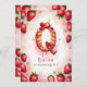 Celebrate a special birthday with this delightful strawberry letter "Q" cake invitation! This charming watercolor design features a fun and festive cake shaped as the letter "Q" decorated with fresh strawberries, pink icing, and a glowing birthday candle. The soft pink background with scattered strawberries adds a playful touch. Personalize with your child’s name, age, and party details for a one-of-a-kind strawberry-themed birthday celebration. Perfect for kids who love fruit-themed parties or summer birthdays!