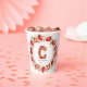 Celebrate in style with this charming strawberry-themed birthday paper cup! Featuring a whimsical watercolor illustration of the letter "C" as a delicious strawberry cake, this design is perfect for kids’ parties and summer celebrations. The cake is adorned with fresh strawberries, creamy pink frosting, and a glowing birthday candle, adding a festive touch. Surrounding the cake, a beautiful border of hand-painted strawberries and green leaves creates a lovely frame. The design is mirrored on both sides of the cup for a seamless look. A perfect choice for a personalized and sweet birthday party theme!