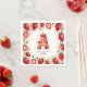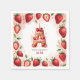 Add a sweet and festive touch to your celebration with this strawberry-themed birthday napkin! Featuring a whimsical watercolor illustration of the letter "A" as a delicious strawberry cake, this charming design is perfect for kids’ birthdays and summer parties. The cake is topped with fresh strawberries, pink frosting, and a glowing birthday candle. Surrounding the cake, an elegant square frame of hand-painted strawberries and delicate green leaves enhances the design. The phrase “Happy Birthday” and a customizable name make it a unique and personal party accessory. A perfect addition to a strawberry-themed celebration!