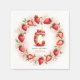 Add a sweet and festive touch to your celebration with this strawberry-themed birthday napkin! Featuring a whimsical watercolor illustration of the letter "C" as a delicious strawberry cake, this charming design is perfect for kids’ birthdays and summer parties. The cake is topped with fresh strawberries, pink frosting, and a glowing birthday candle. Surrounding the cake, an elegant circular frame of hand-painted strawberries and delicate green leaves enhances the design. The phrase “Happy Birthday” and a customizable name make it a unique and personal party accessory. A perfect addition to a strawberry-themed celebration!