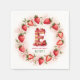Add a sweet and festive touch to your celebration with this strawberry-themed birthday napkin! Featuring a whimsical watercolor illustration of the letter "E" as a delicious strawberry cake, this charming design is perfect for kids’ birthdays and summer parties. The cake is topped with fresh strawberries, pink frosting, and a glowing birthday candle. Surrounding the cake, an elegant circular frame of hand-painted strawberries and delicate green leaves enhances the design. The phrase “Happy Birthday” and a customizable name make it a unique and personal party accessory. A perfect addition to a strawberry-themed celebration!