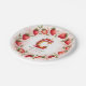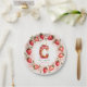Celebrate in style with this adorable strawberry-themed round paper plate! The elegant border features a circular arrangement of hand-painted strawberries, with a mix of whole and sliced berries, delicate green leaves, and tiny white blossoms. At the centre, a beautifully illustrated letter "C" cake takes the spotlight, decorated with pink frosting, juicy strawberries, and a glowing birthday candle. The soft watercolor background blends seamless shades of blush and rosy pink, creating a festive and charming atmosphere. Perfect for strawberry-themed birthdays, fruit lovers, and summer celebrations. Pair with matching invitations and party decor for a coordinated look!
