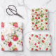 Strawberry Blossoms and Berries Three Patterns Wrapping Paper Sheet