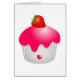 Illustration of a tasty looking iced cupcake with a juicy strawberry on top. Easily customize and choose your own background colour or add text. Image available on various gifts and products.