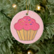 Strawberry Cupcake Faux Embroidery Print Ceramic Ornament