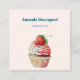 Square business card with a yummy illustration featuring a delicious looking cupcake. White cream and a big strawberry adorn this yummy sweet treat.