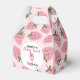 A charming pink favour box with adorable strawberry illustrations—perfect for sending guests home with sweet memories and small treats.