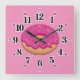 Strawberry Doughnut with Sprinkles Cartoon Square Wall Clock