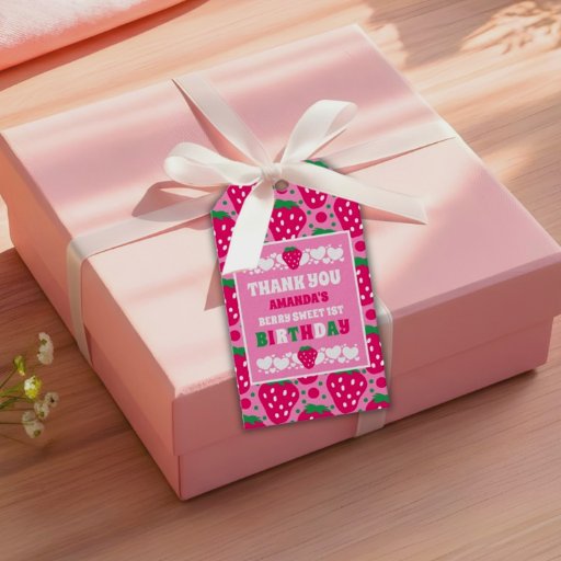Decorate your party space with this Strawberry First Birthday Celebration Banner. Features “Berry Sweet First Birthday” for a fun and cohesive theme. Easy to hang above tables, doors, or entryways.