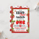 Cute strawberry theme first birthday party invitation, edit the text yourself when ordering