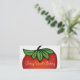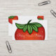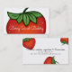 Big bright, bold, colourful strawberry fruit with green top on this business card for a home bakery, cake artist, personal chef, caterer or catering company,