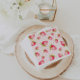 Cute, watercolor, boho sweet strawberry party decoration plates. All elements are chosen to bring good vibes, with a mix of summer colours: hot pink, pale pink, and grass green. The charming background with dots, makes this design perfect for summer party celebrations.