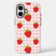 pastel pink white green fruit strawberries print pattern cute kawaii country plaid retro