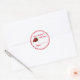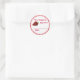 These personalized canning stickers will fit on top of your glass jam, jelly, and preserves jar lids. They have an image of a strawberry with a red chequered border pattern.