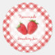Autocollants rétro personnalisables pour confiture de fraise maison, gelée ou confit des jarres aux bleuets frais sur motif de nappes en vichy rouge et blanc. Ils peuvent être collés sur le couvercle ou sur le bocal lui-même et ont une collection personnalisée. D'autres autocollants de confiture de fruits sont également disponibles !