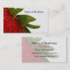Spread the word about your awesome new business with these fruity red and green business cards with a mouth watering closeup photograph of a strawberry with the green leaves still attached.