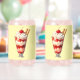 Sip in style with this elegant sweetest treats can set this unique glassware feature is a beautifully illustrated strawberry parfait layered with whipped cream and topped with a bright red cherry and decadent wafer sticks set against a soft buttery yellow background. The design brings a touch of vintage soda fountain charm to your modern kitchen perfect for iced coffee summer cocktails or a refreshing glass of milk these glasses are durable, stylish and I must have any dessert lover.