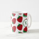 Add an initial to this strawberry pattern mug for a personalized coffee mug gift. The pattern is on both sides of the mug, along with the initial.