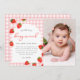 Strawberry pink berry plaid gingham birthday thank you card.