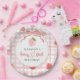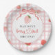 Strawberry Pink Gingham 1st Birthday Paper Plate