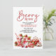 Cute red, pink, and white "Berry Big News" little girl's 1st birthday strawberry party invitation