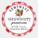 A strawberry preserves homemade custom gift round sticker with a red buffalo plaid design.
