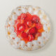Features a strawberry shortcake with a centre of glistening red strawberries surrounded by flower shaped puffs of whipped cream. In colours or red and white.