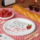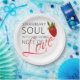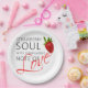Red strawberry berry with green leaves and a text Strawberry soul with dominating note of love. One of a kind t-shirts, prints and gifts for everyone. Love and romance theme. Square format products and souvenirs.