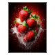 A digital illustration of a freeze frame of several strawberries falling and splashing in water.