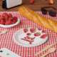 Two Sweet! Strawberry and pink plaid 2nd birthday party plates.