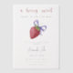 Baby shower invitation card featuring watercolor illustration of strawberries with a purple bow. The text says "a berry sweet baby is on the way."