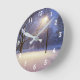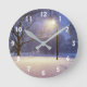 Panoramic view of evening winter landscape. View of covered in snow trees in park and street lights in Riga, Latvia.