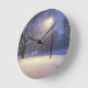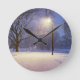 Panoramic view of evening winter landscape. View of covered in snow trees in park and street lights in Riga, Latvia.