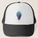 It depicts a long-haired, stylized, ethereal woman. In addition to the geometric patterns on her outfit, the woman's face is also covered in patterns. She is positioned inside an elaborate, abstract frame that seems to be breaking open, featuring a star at the top. The woman's arms are extended in an inviting gesture, and her skin appears translucent. The background and the woman's clothing, hair, and skin are all heavily coloured in blue and purple, which makes for an incredibly interesting image. The artwork conveys the idea of a magical entity that is hospitable and kind. It's purpose is to portray the woman's strength, beauty, and otherworldly essence.
