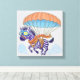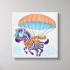 Stretch canvas of a zebra in a parachute floating among the clouds. One of three in a series of animals with parachutes.