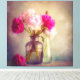 This enchanting floral still life captures the beauty of a peony bouquet in vintage glass vases. With a soft, romantic glow and an antique aesthetic, this artwork is perfect for adding a touch of elegance to any space. Ideal for home decor, wall art, and gifts for flower lovers.