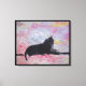 Stretched canvas print with my artwork of black cat in window.