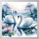 Stretched Canvas Print - Swans in a Waterlily Pond Swans in a Tranquil Lily Pond Immerse yourself in the serene beauty of this artwork. A majestic swan, with its elegant form and pristine white plumage, floats serenely on a calm lake. The water's surface reflects the soft light and the delicate blooms of water lilies that dot the scene, creating a tranquil and captivating composition. This piece evokes a sense of peace and natural harmony.