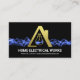 A gold home sits in the darkness with a blue electrical wave striking through it and lighting up the gold light bulb. Just below the design is the job title "home electrical works" and the contact details. You can change the caption remarks to the job title to suit your own service needs.