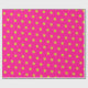 This wrapping paper is covered in striking lime green polka dots on a fuchsia background.