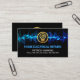 A blue electrical lightning wave streaks across the card's face zapping through a gold bulb logo you can use. Inside the bulb is a gold home that replicates the filament. After this you have the business name, your prestigious name and the contact details.