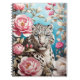Striking Snow Leopard Gaze And Pink Peonies Notebook