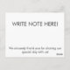 We loved these postcards & used them as thankyou cards for our wedding! We personalized them & got rid of the pre-written thankyou text & left a blank space for us to write our own individualized thankyous to our guests, making them a bit more special. They were a bit smaller than we were expecting, but nonetheless, we loved them!! Beautiful printing, super clear image! Really good quality for a great price.